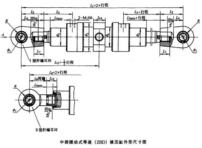 注:其它尺寸代号与中部摆动式(ZB)相同。